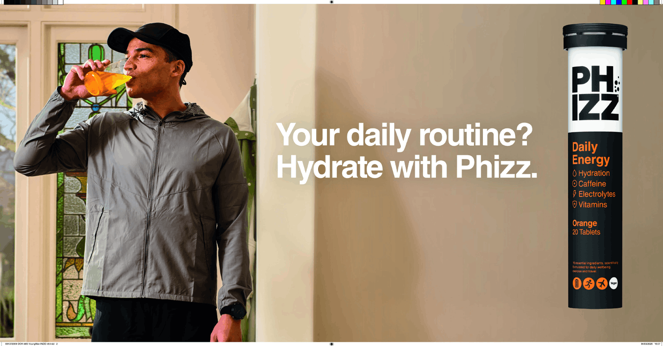 The number one brand in the UK retail market’s fastest-growing wellbeing category*, Phizz sold 65 million drinks last year, showing continued consumer demand for convenient, effective hydration. The primary objective of the campaign is to drive awareness, ensuring more people recognise the brand and understand the role effective hydration can play in everyday life.