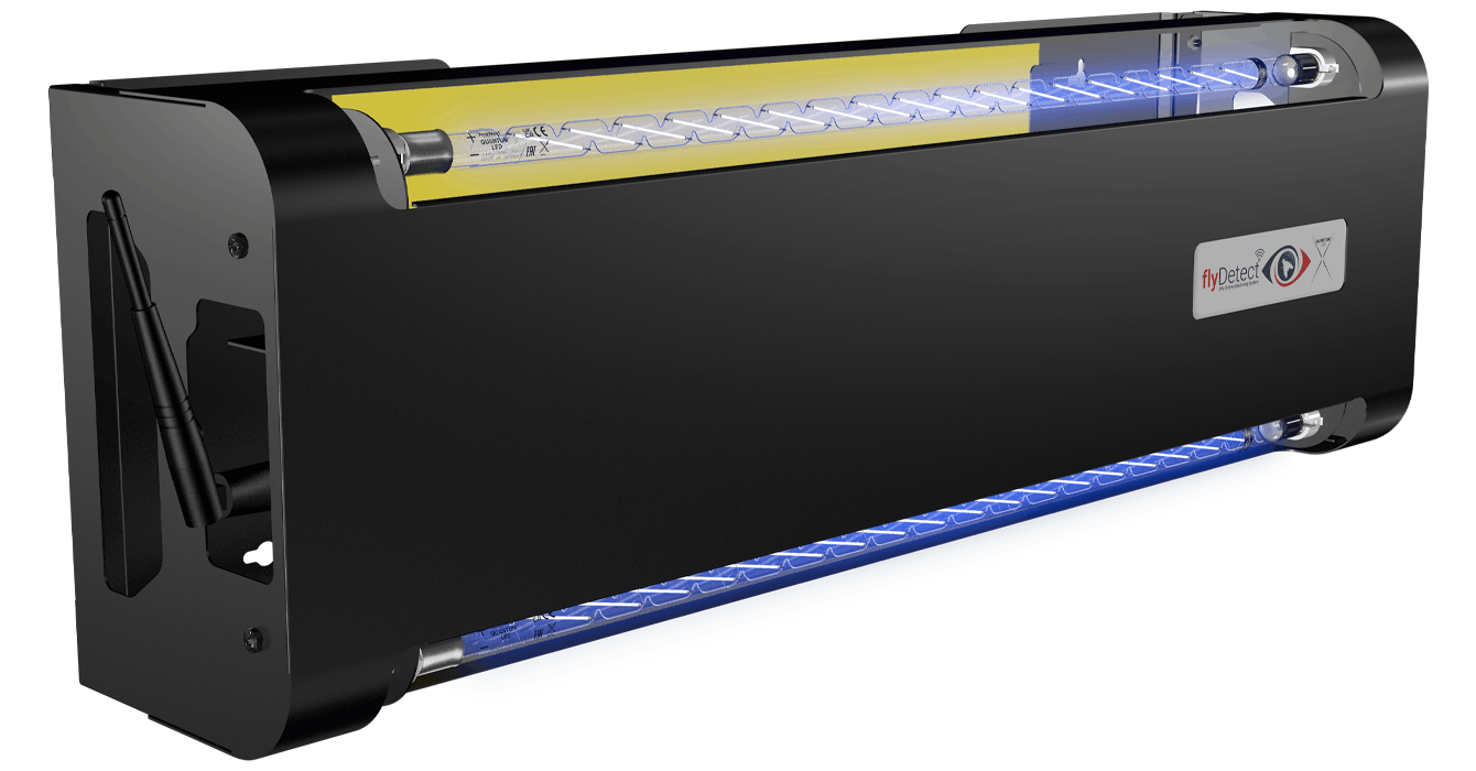 Designed for commercial environments where hygiene and compliance are critical, the flyDetect® X provides 24/7 remote monitoring of flying insect activity. The system combines advanced Quantum® X LED tubes with intelligent monitoring technology, allowing users to remotely track trap performance, monitor insect levels, and support proactive pest management strategies.