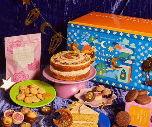 ● Ramadan Sharing Box (£36.99) A curated sweet and savoury selection featuring brownies, rose & coconut mahalabia cookie bites, za’atar & olive manakish bites and sweet chilli nuts. ● Ramadan Midnight Feast Hamper (£69.99) A generous hamper of brownies, tarts, cookie bites, shortbread and decorative touches — ideal for late-night gatherings.
