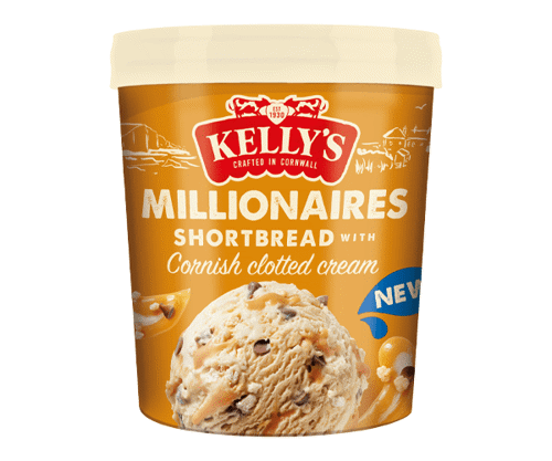 MILLIONAIRES SHORTBREAD WITH CORNISH CLOTTED CREAM - 425ml - Made with rich Cornish clotted cream. Swirls of gooey caramel ripple through a velvety clotted cream base, studded with golden biscuit pieces.