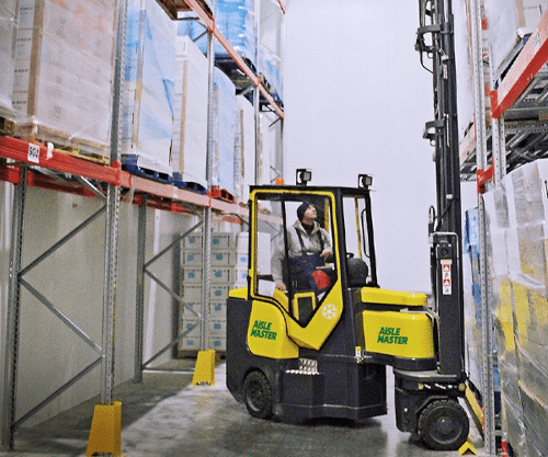 The versatile Aisle Master can operate both indoors and outdoors and its “truck to rack” capability enhances offloading, handling, and storage of your goods while vastly increasing productivity. The cold store model is specifically designed to keep drivers warm in cold climates, reducing the need for breaks and increasing productivity. It features a fully enclosed, high-visibility cabin with double-glazed heated windows that eliminate condensation build-up when driving between different temperatures and in and out of the cold room.
